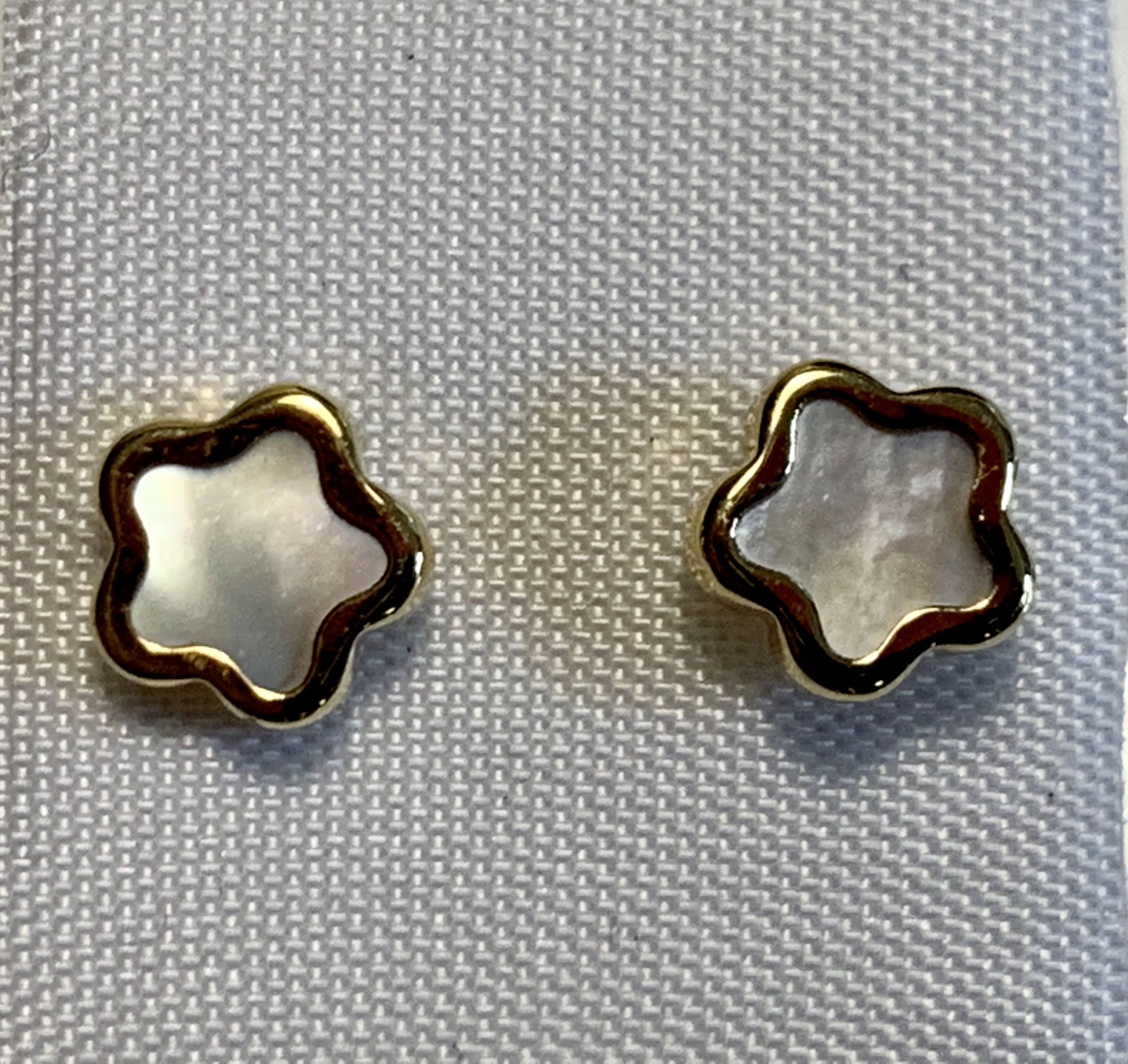Pendientes flor nácar 5,5mm tuerca rosca, oro 18k